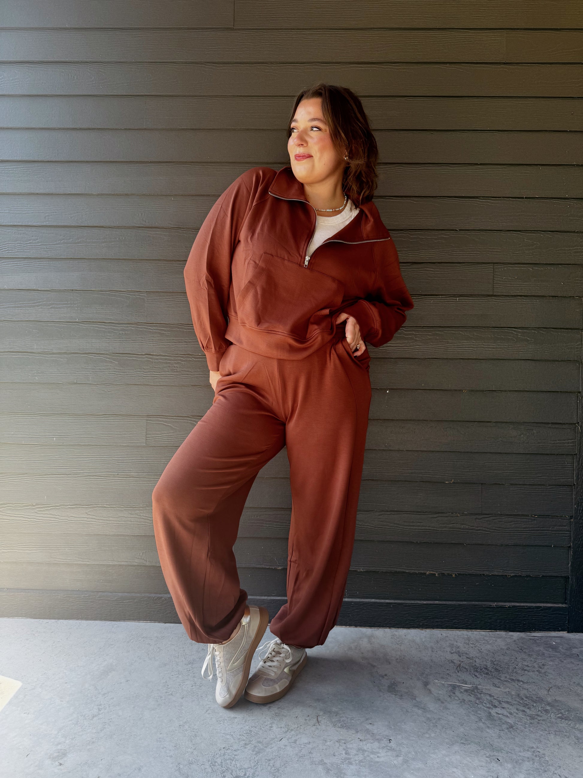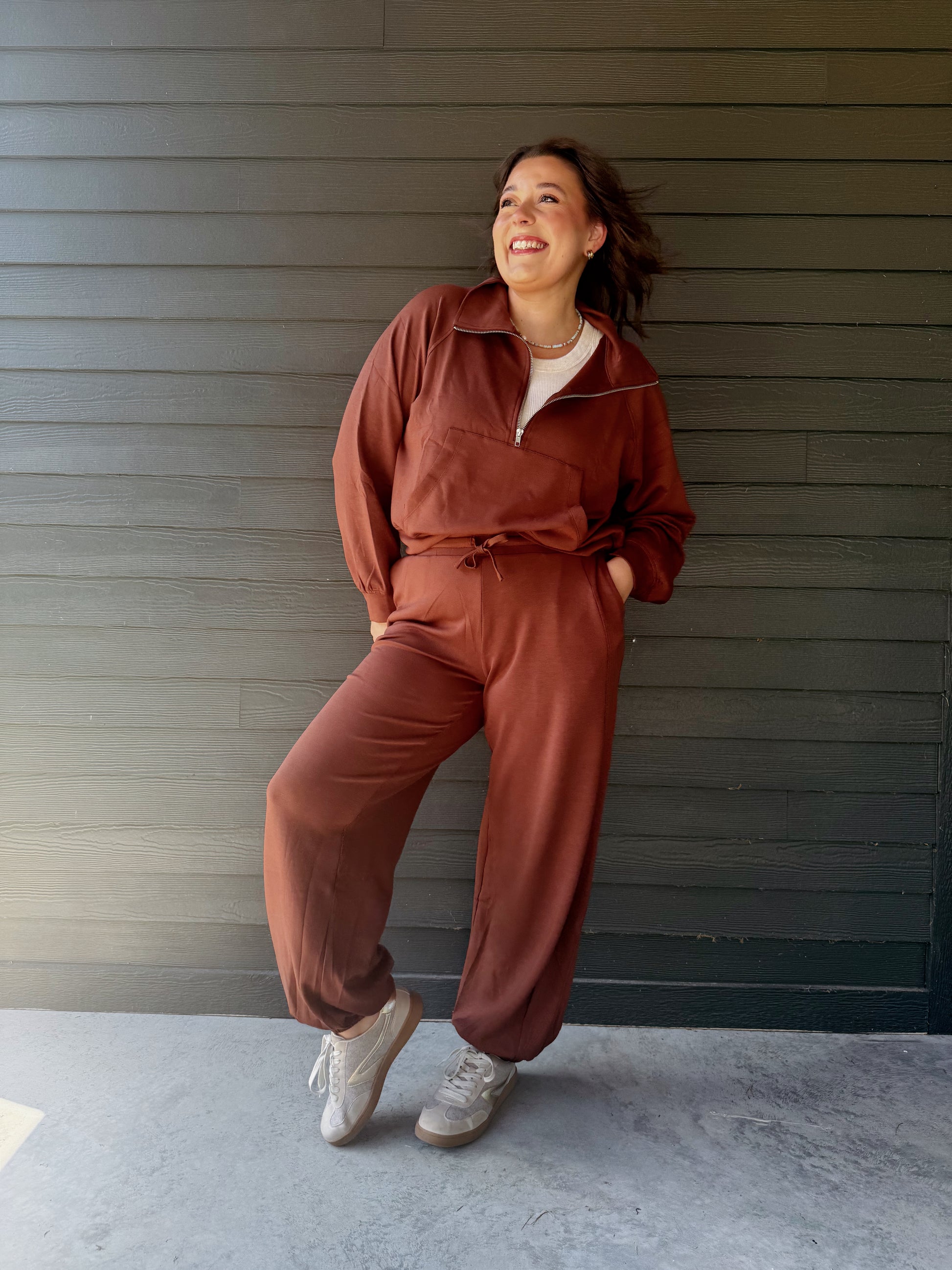 The Arlo Jogger features a relaxed fit with a soft scuba feel, drawstring waist, and cuffed ankles. Perfect for lounging or pairing with The Hayes Half Zip Sweatshirt.