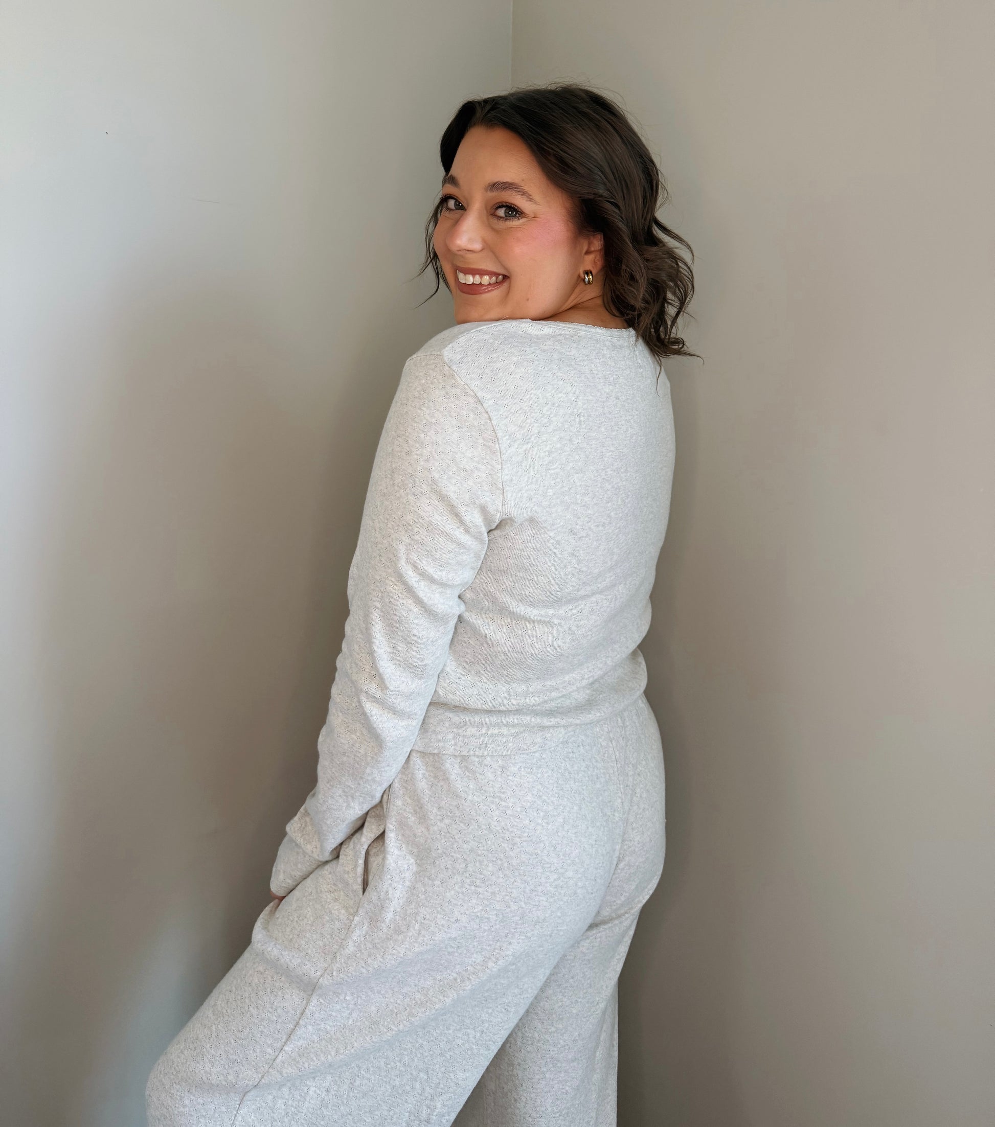 A soft, lightweight pointelle knit top designed for all day comfort. Features a relaxed fit with long sleeves and a square neckline. Perfect for lounging or casual everyday wear.