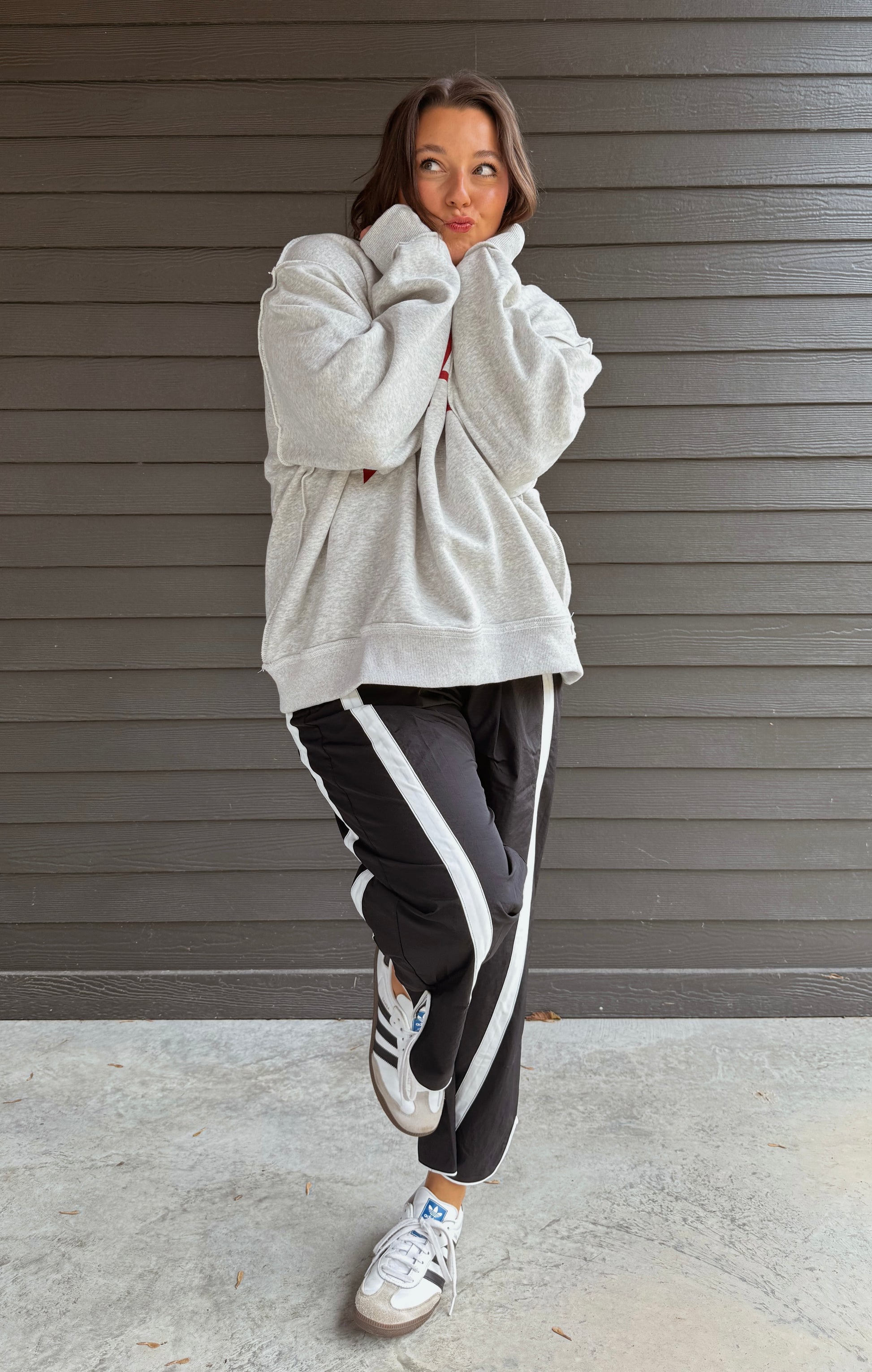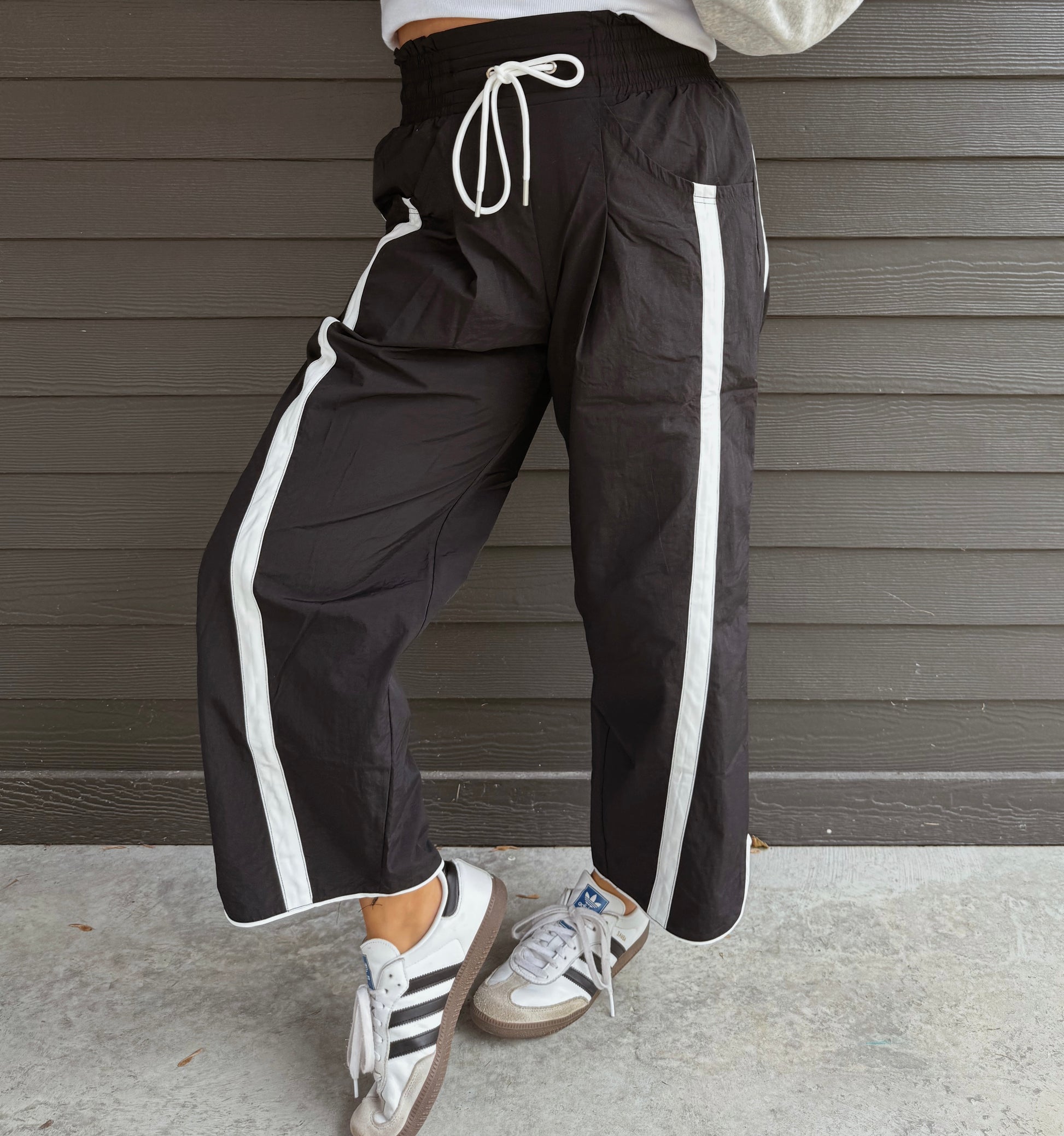 The Collins Sport Pant is your new off duty essential. Designed with lightweight fabric, a relaxed wide leg, and contrast white side piping for that sporty edge. They're perfect for errands, coffee runs, or weekend lounging. Finished with an elastic high waist band and adjustable drawstring for a comfy, custom fit.