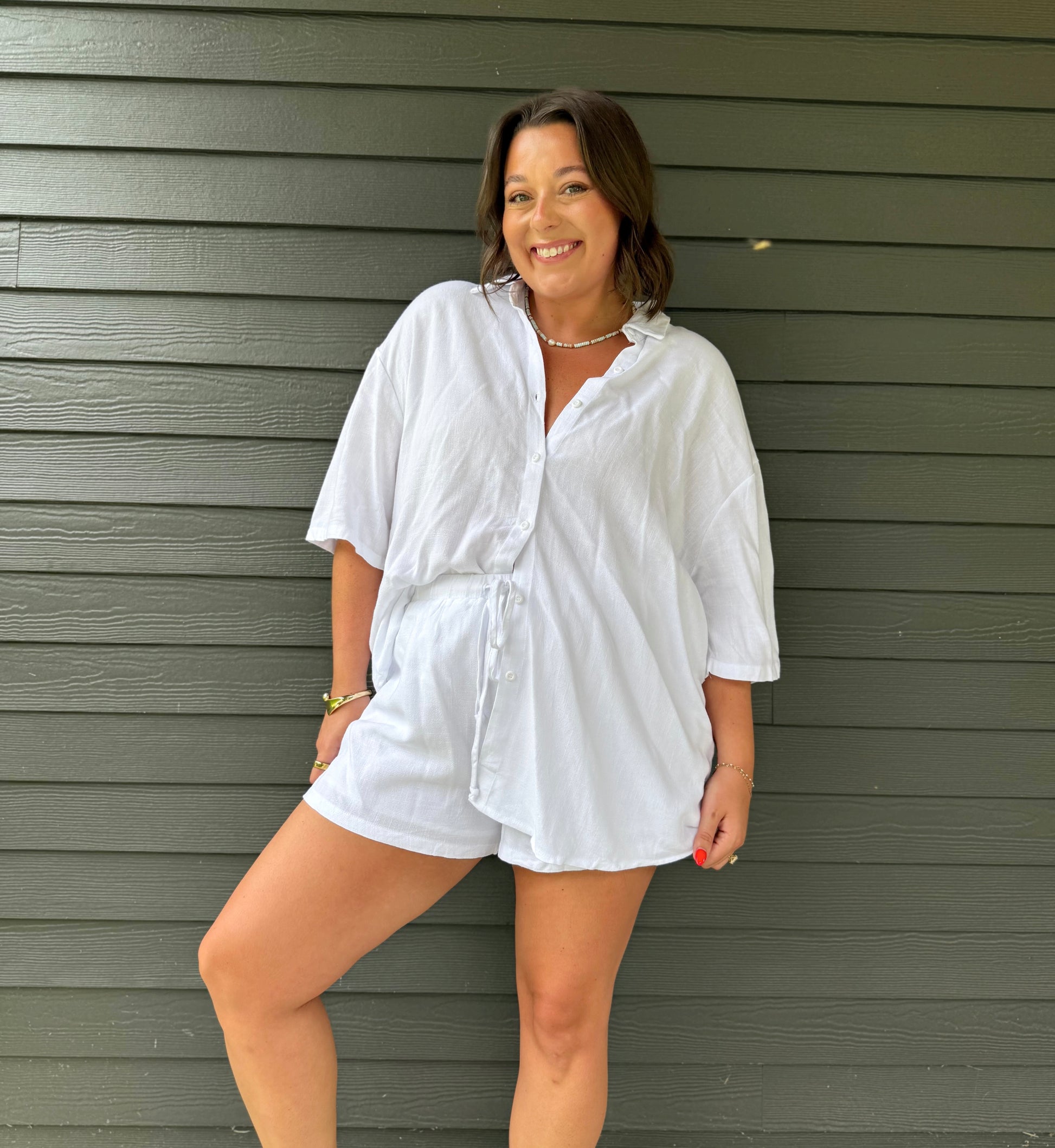 Relaxed, lightweight, and effortlessly cute — The Mallory Top features a button-down front, drop shoulders, and an oversized fit perfect for summer layering. Wear it open over a tank or buttoned up as a set with the matching shorts!
