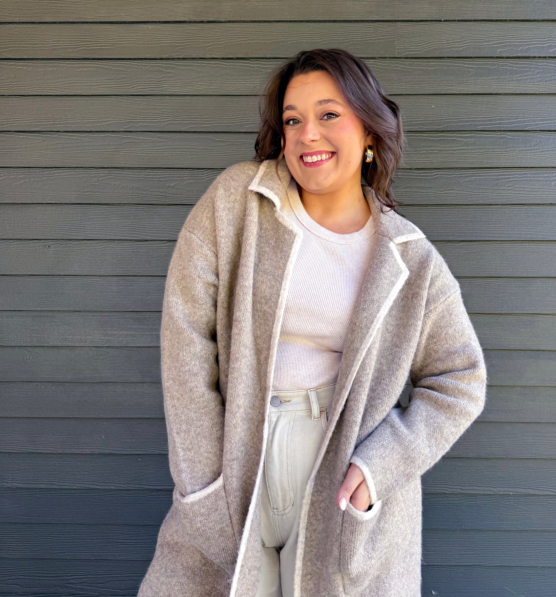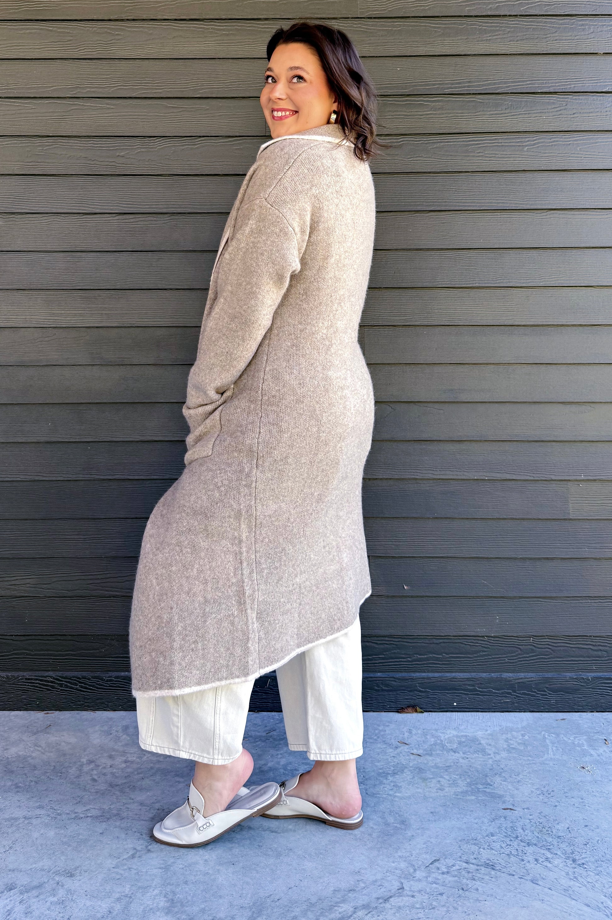 The perfect blend of a coat and cardigan, The Sable Cardigan adds effortless polish to any look. Made from a soft, cozy knit with contrast trim and deep pockets, it's ideal for layering over denim or pants for an elevated everyday outfit.