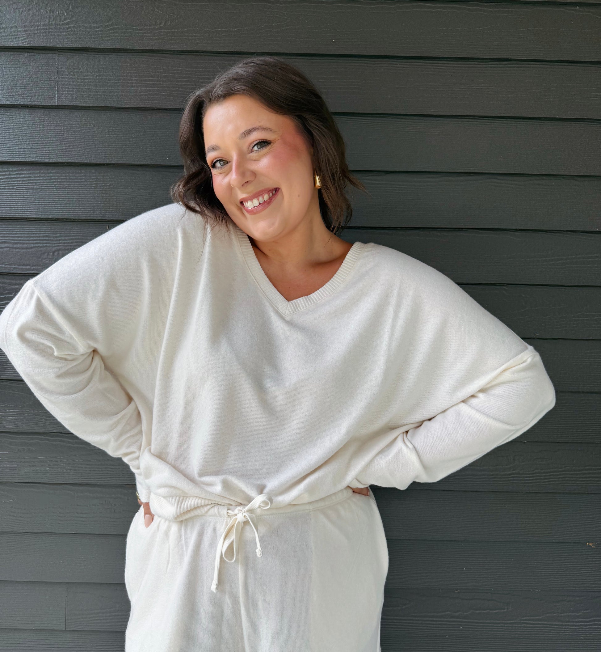Slip into comfort with The Sunday Lounge Top. A relaxed, drop shoulder silhouette that drapes effortlessly. Designed with a soft knit fabric and an easy, v-neckline for that laid back, yet polished feel. Pairs well with our Sunday Lounge Pant.