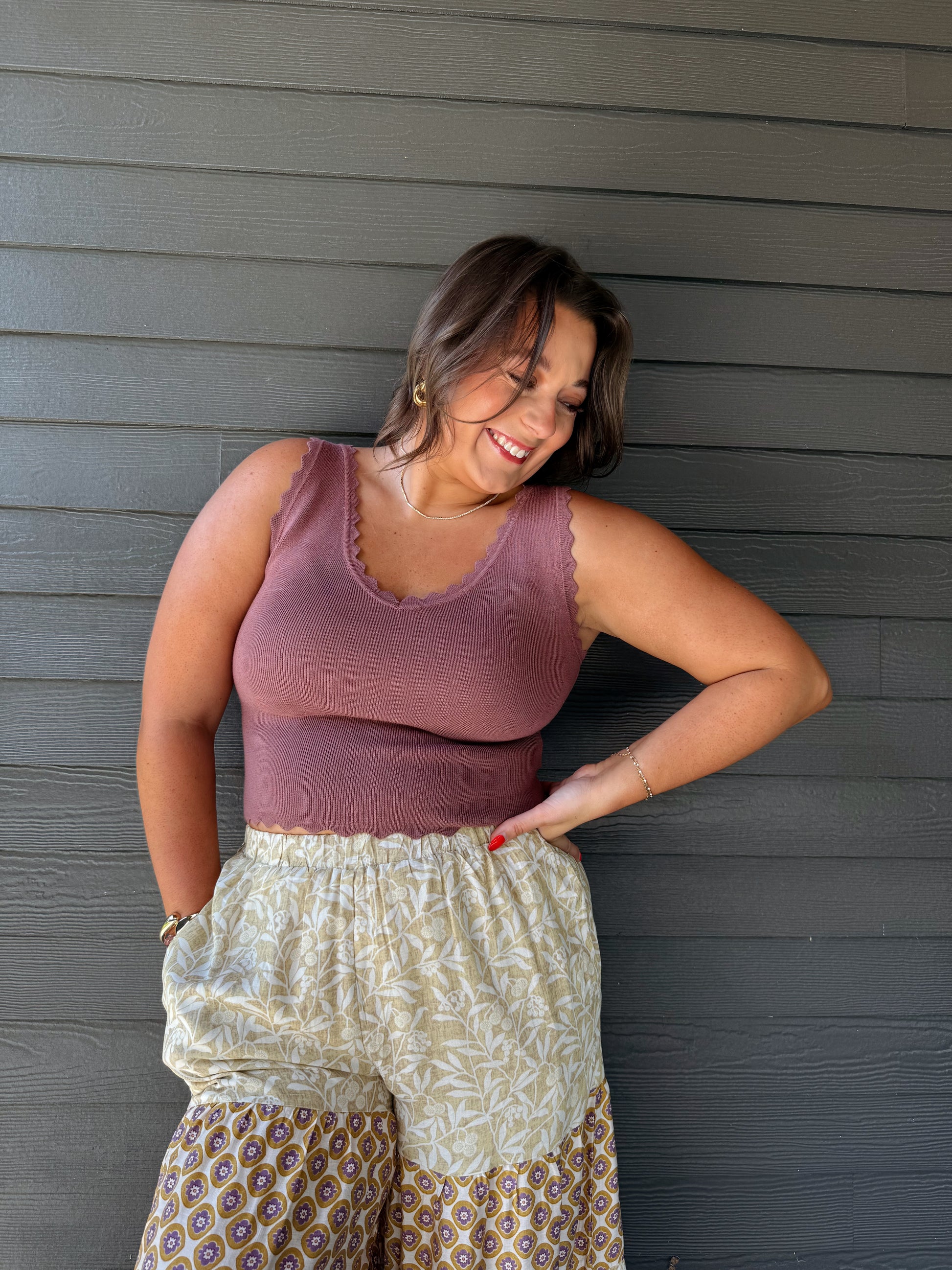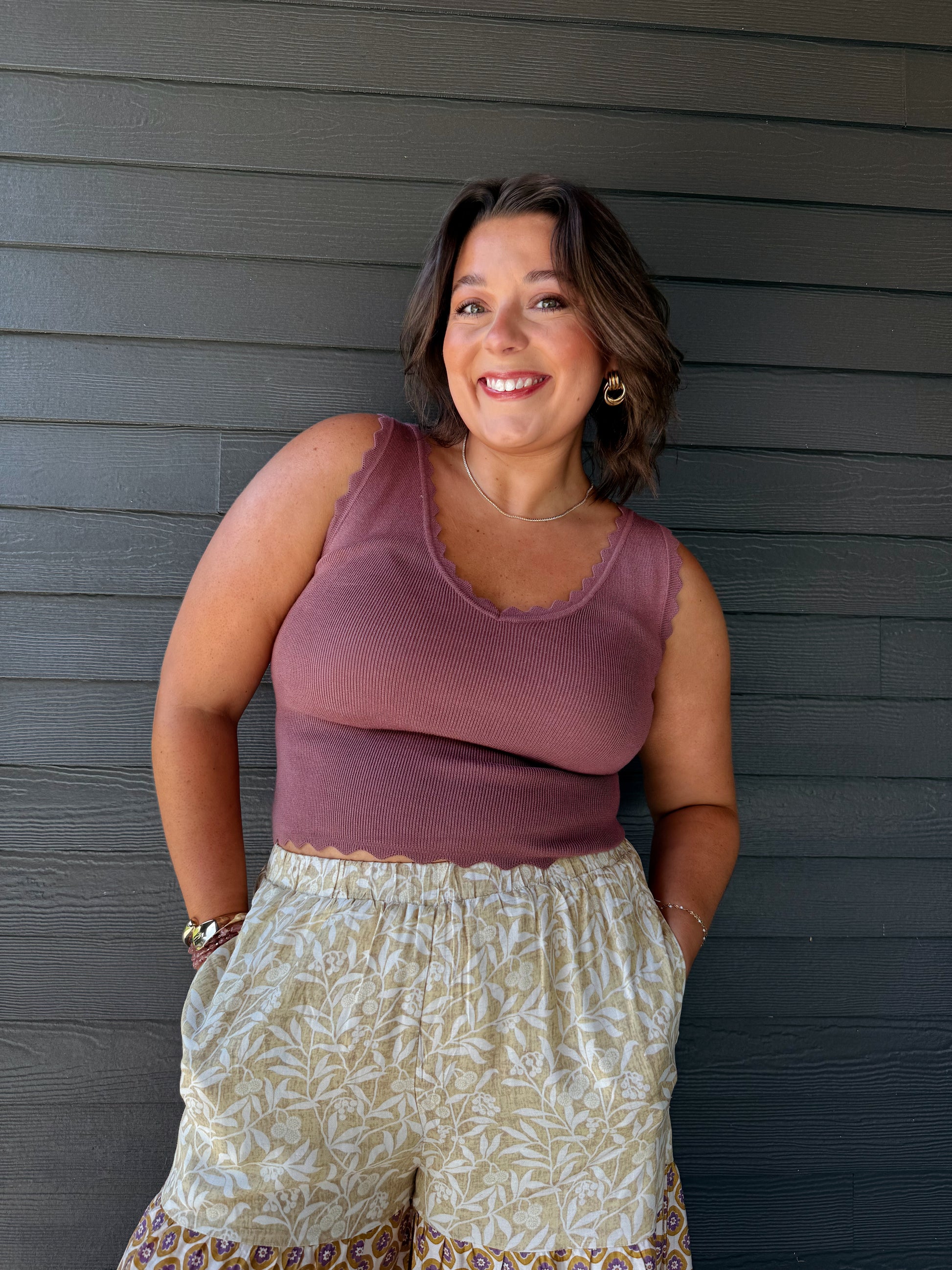 Effortlessly chic and flattering, this scallop edge knit tank features a soft sweater fabric, a feminine neckline, and a slim fit perfect for layering or styling solo.